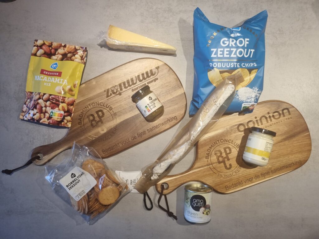 Het was prachtig om te zien dat al onze sponsoren kwaliteit hoog in het vaandel hadden staan. Als blijk van waardering bezorgden wij hen een kwalitatief goede borrelplank, waarbij hun eigen logo zelfs in de plank gegraveerd is. Onze sponsoren waren werkelijk van onschatbare waarde!